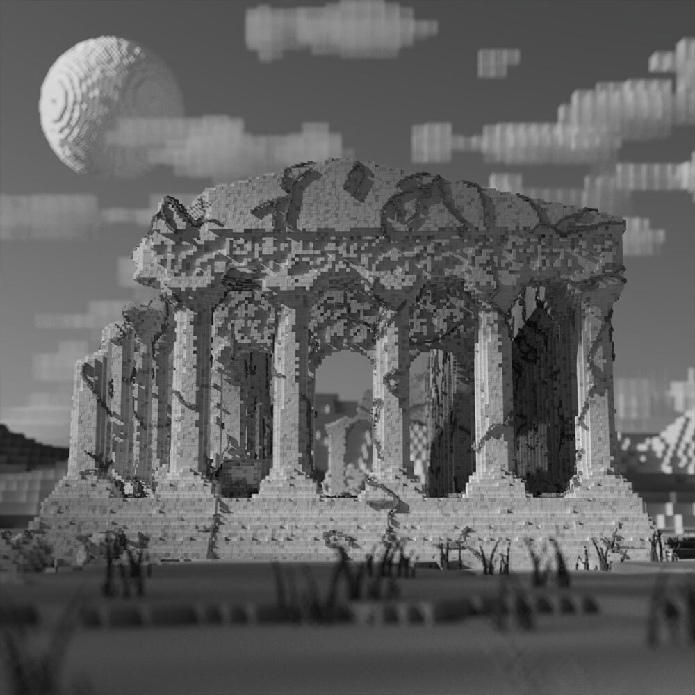 Contains procedural roman ruins with vines in environment with fake voxelizer setup. Basic materials, lighting and camera / render setup.